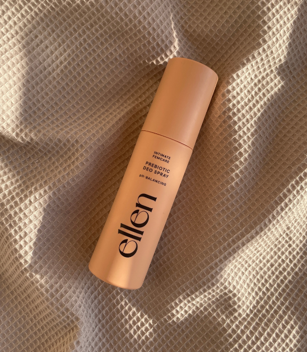 A vagina should smell vagina. However, we have sweat glands in the groin just like under the arms. Washing the intimate area more than once a day can lead to washing away the protective lactic acid bacteria. Instead, you can use ellen® Prebiotic Deo Spray, which is a perfume free and odor-neutralizing intimate deodorant, especially designed for those who want a refreshing feeling between washes. ellen® Prebiotic Deo Spray is a blend of carefully selected ingredients such as moisturizing lactic acid that helps preserve the natural pH value in the intimate area. ellen® Prebiotic Deo Spray is enriched with prebiotics that boost the skin’s good bacteria, reduce irritation and strengthen the skin’s protective barrier. Made in Sweden.